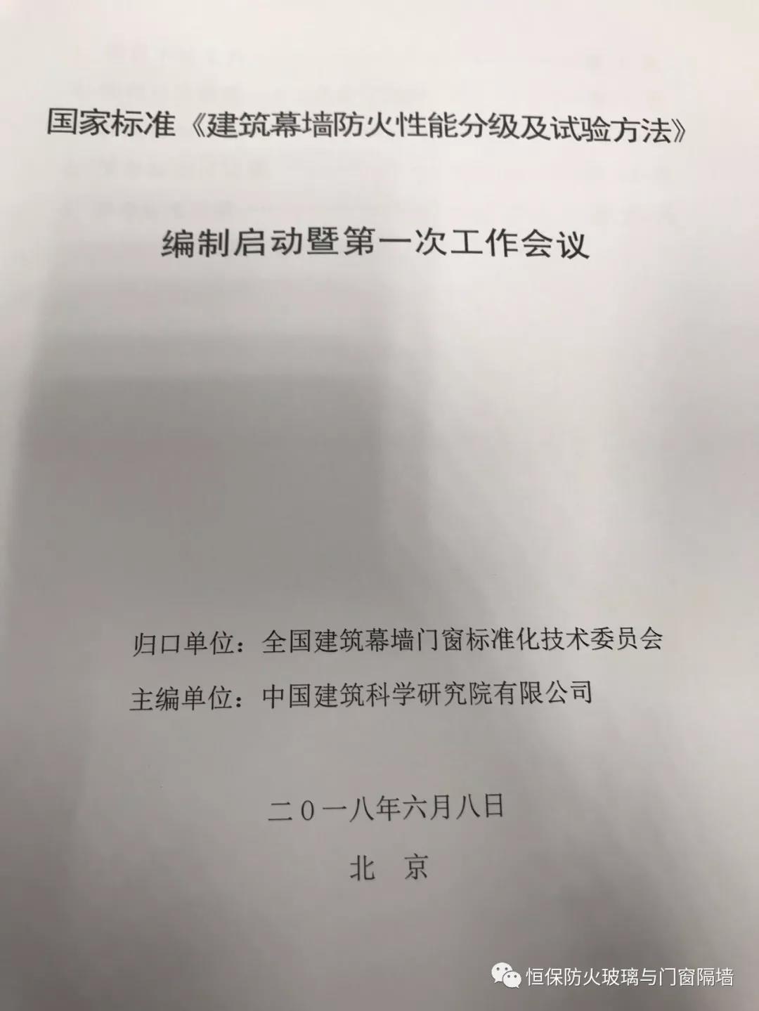 全國建筑幕墻門窗標準化技術委員會秘書處劉會濤高級工程師代表標委員會宣讀編制組名單,標準編制啟動會圓滿結束。鶴山恒保陳沃林總經理也應邀參加了這次的國家標準編制。