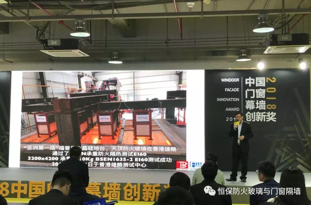 在本次展會中,恒保·福普思公司總經理陳沃林還參加了“2018中國門窗幕墻創新獎--星品發布會” 活動,演講主題為“防火玻璃地臺采光頂的測試與應用”,獲得了現場聽眾的肯定與支持,并在會后解答各方來客的問題。