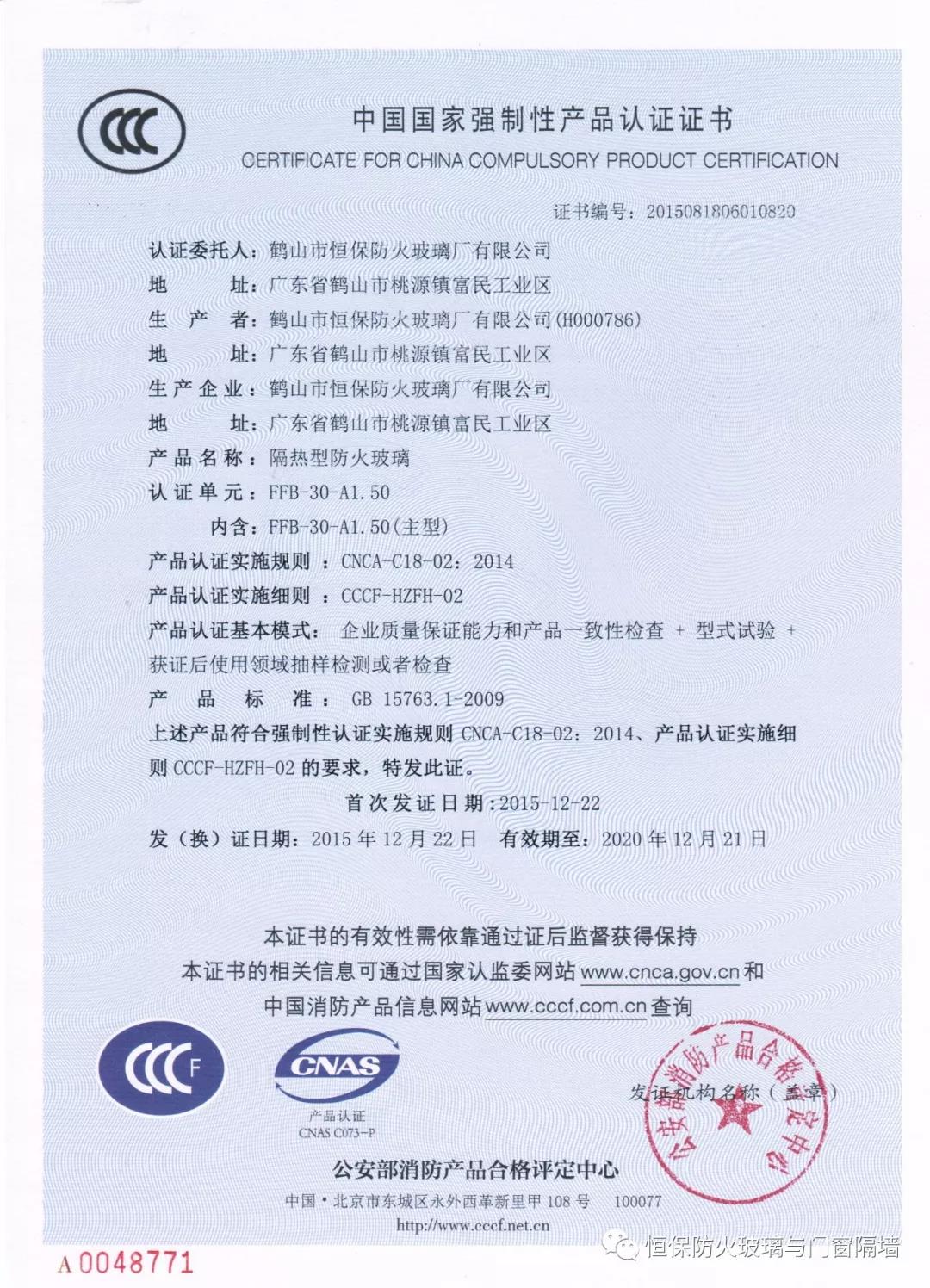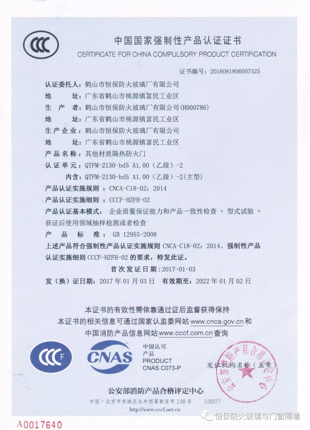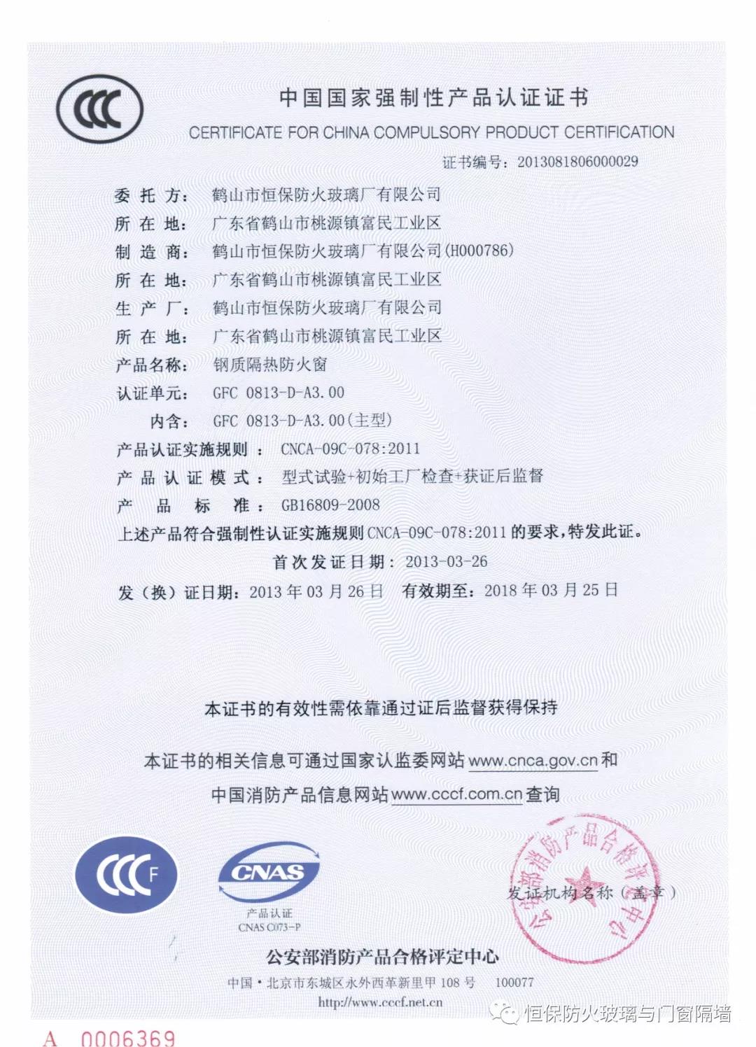 4.恒保公司一共12個產品獲得國家3C認證證書,2小時和3小時鋼質隔熱防火窗更是國家首個通過國家認證的產品;